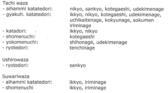 - Kotegaeshi – aihamni katatedori, gyakuhamni katatedori, shomenuchi